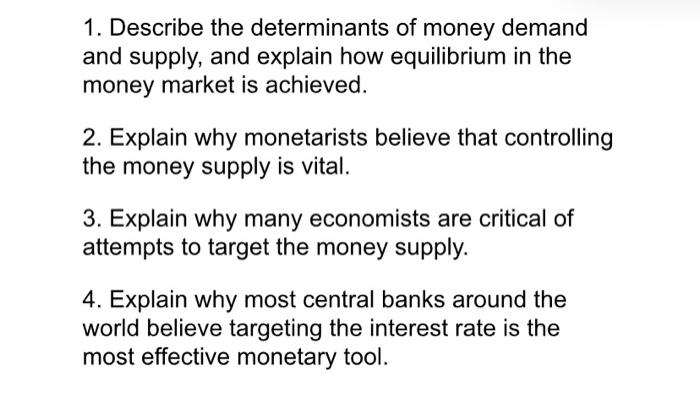 Solved 1 Describe The Determinants Of Money Demand And Chegg Com