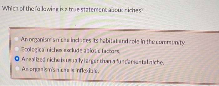 Which Best Describes How An Organism S Niche Is Determined An Organism S Habitat And Inherited Brainly Com